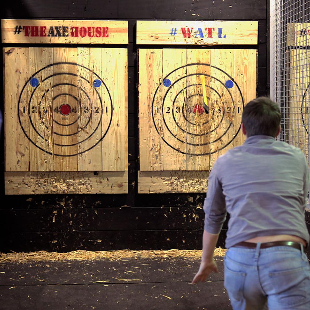 We have 10 axe throwing lanes with not only axes to throw we also have ninja stars throwing knives and playing cards for your throwing delight. The Axe House with Axe Throwing and Knife Throwing. Weekdays check out our axe kicking happy hour.